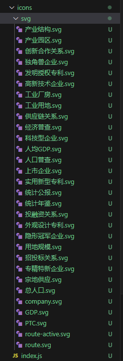 第二步:src目录下新建icons文件夹,文件夹下新建svg文件夹和index.js文件,svg文件夹用于存放svg文件